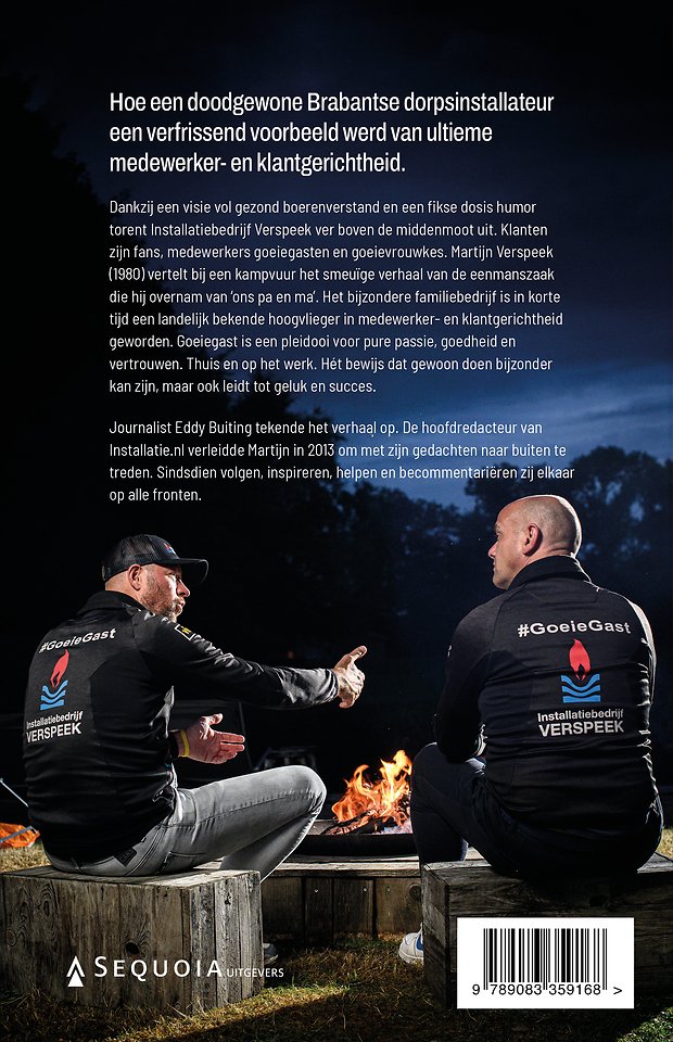 Dankzij een visie vol gezond boerenverstand en een fikse dosis humor torent Installatiebedrijf Verspeek ver boven de middenmoot uit. Klanten zijn fans, medewerkers goeiegasten en goeievrouwkes. Martijn Verspeek (1980) vertelt bij een kampvuur het smeuïge verhaal van de eenmanszaak die hij overnam van ‘ons pa en ma’. Het bijzondere familiebedrijf is in korte tijd een landelijk bekende hoogvlieger in medewerker- en klantgerichtheid geworden. Goeiegast is een pleidooi voor pure passie, goedheid en vertrouwen. Thuis en op het werk. Hét bewijs dat gewoon doen bijzonder kan zijn, maar ook leidt tot geluk en succes.