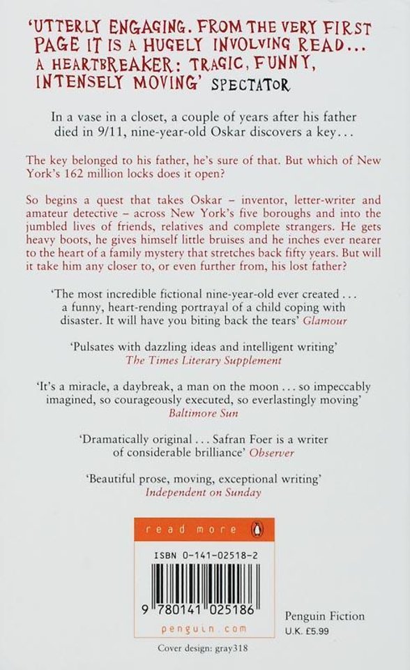 So begins a quest that takes Oskar - inventor, letter-writer and amateur detective - across New York's five boroughs and into the jumbled lives of friends, relatives and complete strangers. He gets heavy boots, he gives himself little bruises and he inches ever nearer to the heart of a family mystery that stretches back fifty years. But will it take him any closer to, or even further from, his lost father?