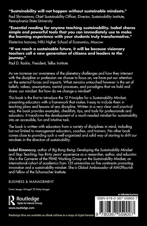 This book introduces for the first time the 12 Principles for a Sustainability Mindset, presenting a framework to address the complexity of a mindset in bite-size components. Written in a very clear and practical way, the book provides a checklist, tips and tools.