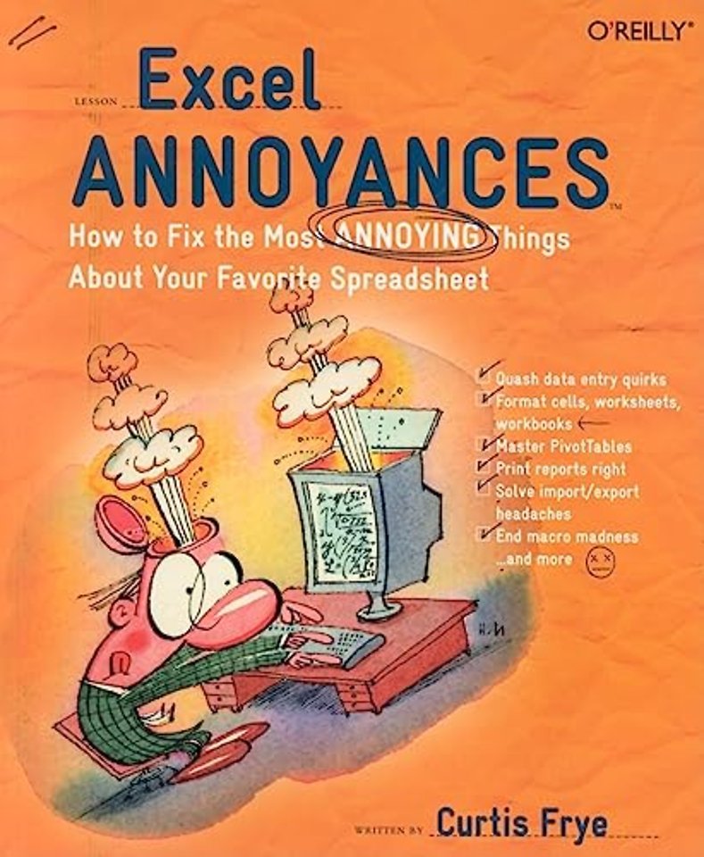 Author Curtis D. Frye breaks down the cavalcade of information into several tip-of-the-finger categories such as Entering Data, Formatting, Charting, Printing, and more. If you're one of the millions of people who use Excel, you're sure to find a goldmine of helpful nuggets that you can use to fix the program's most annoying traits. In the end, Excel Annoyances will help you to truly maximize Excel's seemingly limitless potential.