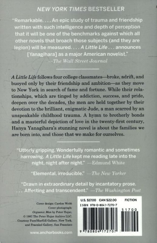 A Little Life follows four college classmates-broke, adrift, and buoyed only by their friendship and ambition-as they move to New York in search of fame and fortune. While their relationships, which are tinged by addiction, success, and pride, deepen over the decades, the men are held together by their devotion to the brilliant, enigmatic Jude, a man scarred by an unspeakable childhood trauma. A hymn to brotherly bonds and a masterful depiction of love in the twenty-first century, Hanya Yanagihara's stunning novel is about the families we are born into, and those that we make for ourselves.