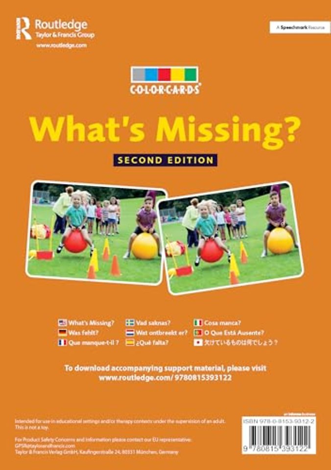What’s Missing? Second Edition is designed to promote observation, visual and auditory skills including the development of descriptive language. Comprising 48 fully-updated colour flashcards depicting 24 everyday scenes, each card shows a complete scene and another with five items missing. The scenes are presented with increasing levels of difficulty to allow for selection when working with students of different ages and abilities. Missing items may be categorised as either having no influence on a situation, causing an inconvenience, preventing the functioning of an object, or not being possible in real life – both encouraging basic reasoning and the development of problem solving skills.