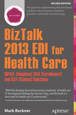 BizTalk 2013 EDI for Healthcare – EDI 834Enrollment Solutions eliminates the complexity anddemonstrates how to build both inbound and outbound EDI 834 processes inBizTalk server that follow the required patterns for integrations with theseexchanges. Archiving, mapping,reconstituting EDI 837 data, exception handling and advanced logging andreporting (without the need for BAM!) are all covered in enough detail to allowyou to implement your own fully functional solution.