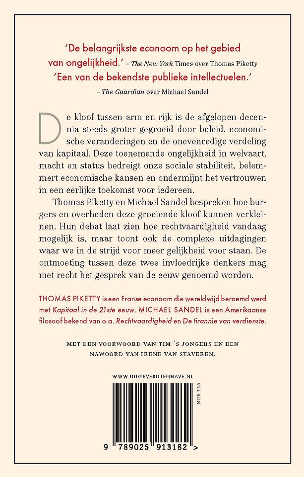 Hoe herstel je sociale rechtvaardigheid in een wereld die wordt gedomineerd door marktdenken en verdienste? In een indringende dialoog onderzoeken Thomas Piketty en Michael Sandel hoe politiek, economie en moraal weer met elkaar verbonden kunnen worden. Teun van Aken las het boek.