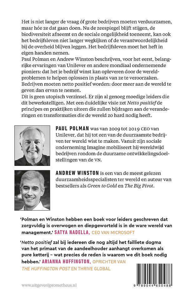 In this seminal book, former Unilever CEO Paul Polman and sustainable business guru Andrew Winston explode fifty years of corporate dogma. They reveal, for the first time, key lessons from Unilever and other pioneering companies around the world about how you can profit by fixing the world's problems instead of creating them. To thrive today and tomorrow, they argue, companies must become "net positive"—giving more to the world than they take.
