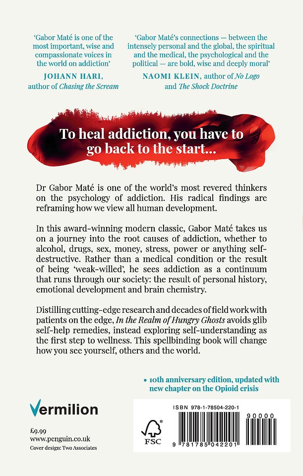 In this award-winning modern classic, Gabor Mate takes a holistic and compassionate approach to addiction, whether to alcohol, drugs, sex, money or anything self-destructive. He presents it not as a discrete phenomenon confined to a weak-willed few, but as a continuum that runs through (and even underpins) our society; not as a medical 'condition', but rather the result of a complex interplay of personal history, emotional development and brain chemistry. Distilling cutting-edge research from around the world, In the Realm of Hungry Ghosts avoids glib self-help remedies, instead promoting self-understanding as the first key to healing and wellness.