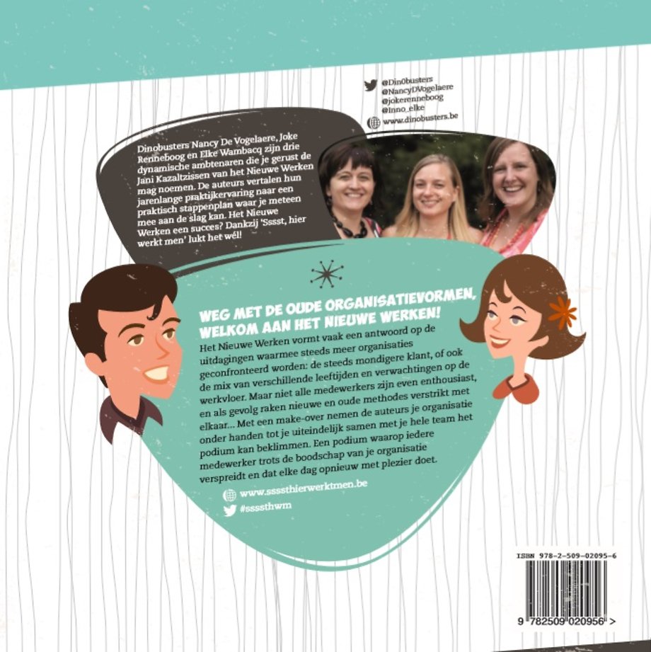 Weg met de oude organisatievormen, welkom aan het Nieuwe Werken! Het Nieuwe Werken vormt vaak een antwoord op de uitdagingen waarmee steeds meer organisaties geconfronteerd worden: de steeds mondigere klant of de mix van verschillende leeftijden en verwachtingen op de werkvloer. Maar niet alle medewerkers zijn even enthousiast over het Nieuwe Werken, waardoor nieuwe en oude methodes met elkaar verstrikt raken ... In ware Dinobuster-stijl nemen Nancy De Vogelaere, Joke Renneboog en Elke Wambacq in hun nieuw boek de make-over van uw organisatie onder handen. Ze laten u in de spiegel kijken tot u uiteindelijk samen met uw hele team het podium kan beklimmen. Een podium waarop iedere medewerker trots de boodschap van uw organisatie verspreidt en dat elke dag opnieuw, met plezier. Dinobusters Nancy De Vogelaere, Joke Renneboog en Elke Wambacq zijn drie dynamische ambtenaren die u gerust de Jani Kazaltzissen van het Nieuwe Werken mag noemen. De auteurs vertalen hun jarenlange praktijkervaring naar een praktisch stappenplan waar u meteen mee aan de slag kan. Het Nieuwe Werken een succes? Dankzij 'Sssst, hier werkt men' lukt het wél!
