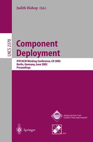 Deployment is the act of taking components and readying them for productive use. There may be steps following deployment, such as installation or m- agement related functions, but all decisions about how to con?gure and c- pose/assemble a component are made at the deployment stage. This is therefore the one opportunity in the software lifecycle to bridge the gap between what the component developer couldn’t know about the deployment environment and what the environment’s developer couldn’t know about the open set of depl- able components. It is not surprising that deployment as a dedicated step gains importance when addressing issues of system-wide qualities, such as coping with constrained resources or preparing for component adaptation and system evolution. Yet, component deployment is still a discipline in its infancy: it became mainstream practice only in the mid 1990s. Much of the best practice impulse originated in products like Microsoft’s Transaction Server and its approach to attribute-based programming and later products like Enterprise JavaBeans and now the Corba Component Model. All these address the speci?c needs of enterprise appli- tion servers. However, the potential of the deployment concept goes far beyond this. Deployment can and should touch e?ectively all truly component-based solutions. The proceedings of Component Deployment 2002 represent a good cro- section of the gamut of deployment issues. From customization to address - source constraints to recon?guration of deployed systems and from architecture to design to languages, the avid reader will ?nd some contribution.