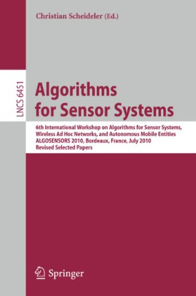This volume contains the papers presented at ALGOSENSORS 2010, the 6th International Workshop on Algorithms for Sensor Systems, Wireless Ad Hoc Networks and Autonomous Mobile Entities, held on July 5, 2010 in Bordeaux, France. There were 31 submissions. Each submission was reviewed by four Program Committee members. The committee decided to accept 15 papers, among them two brief announcements. TheProgramCommitteewouldliketothankallwhosubmittedpapersandall the external reviewers who helped us evaluate the submissions. As the Program Chair of ALGOSENSORS 2010, I would like to express my deep gratitude to the Program Committee for all of their work during the paper review process and the fruitful discussions. I would also like to thank the Workshops Chair Ralf Klasing for organizing a wonderful workshop in Bordeaux. July 2010 Christian Scheideler Conference Organization Program Chair Christian Scheideler University of Paderborn, Germany Program Committee Matthew Andrews Bell Laboratories, USA Novella Bartolini University of Rome “La Sapienza,” Italy Prosenjit Bose Carleton University, Canada Ioannis Caragiannis University of Patras, Greece Bogdan Chlebus University of Colorado Denver, USA S´ andor Fekete Braunschweig University of Technology, Germany Hannes Frey University of Paderborn, Germany Jie Gao SUNY Stony Brook, USA Ralf Klasing CNRS & University of Bordeaux (LaBRI) &INRIA,France Miroslaw Korzeniowski Wroclaw University of Technology, Poland Pierre Leone University of Geneva, Switzerland Xu Li University of Ottawa, Canada Zvi Lotker Ben-Gurion University of the Negev, Israel Alberto Marchetti-Spaccamela University of Rome “La Sapienca,” Italy Thomas Moscibroda Microsoft Research, USA Pekka Orponen Aalto University, Finland Victor Prasanna University of Southern California, USA