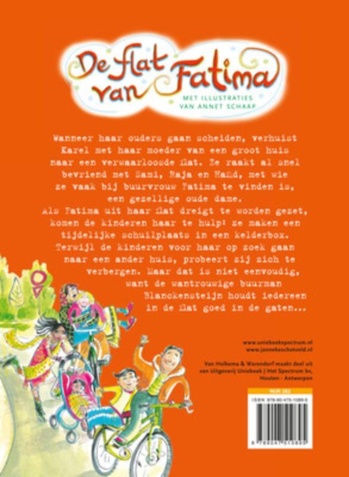 Wanneer haar ouders gaan scheiden, verhuist Karel met haar moeder van een groot huis naar een verwaarloosde flat. Ze raakt al snel bevriend met Sami, Raja en Hafid, met wie ze vaak bij buurvrouw Fatima te vinden is, een gezellige oude dame. Als Fatima uit haar flat dreigt te worden gezet, komen de kinderen haar te hulp: ze maken een tijdelijke schuilplaats in een kelderbox. Terwijl de kinderen voor haar op zoek gaan naar een ander huis, probeert zij zich te verbergen. Maar dat is niet eenvoudig, want de wantrouwige buurman Blanckensteijn houdt iedereen in de flat goed in de gaten.