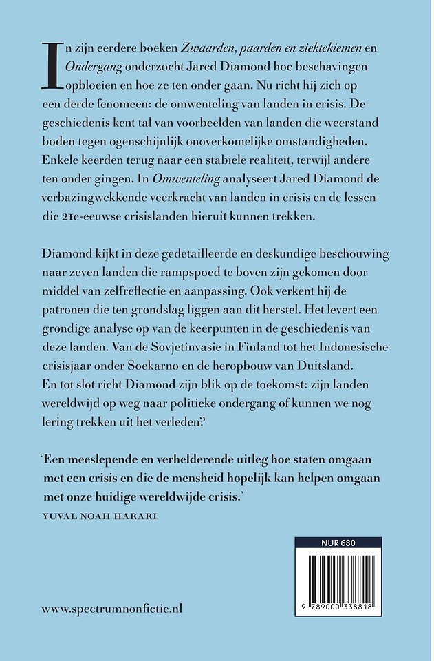 In zijn eerdere boeken onderzocht Jared Diamond hoe beschavingen opbloeien en hoe ze ten onder gaan, maar nu richt hij zijn aandacht op de verbazingwekkende veerkracht van landen in crisis. En op de landen die hierin tekortschieten.
