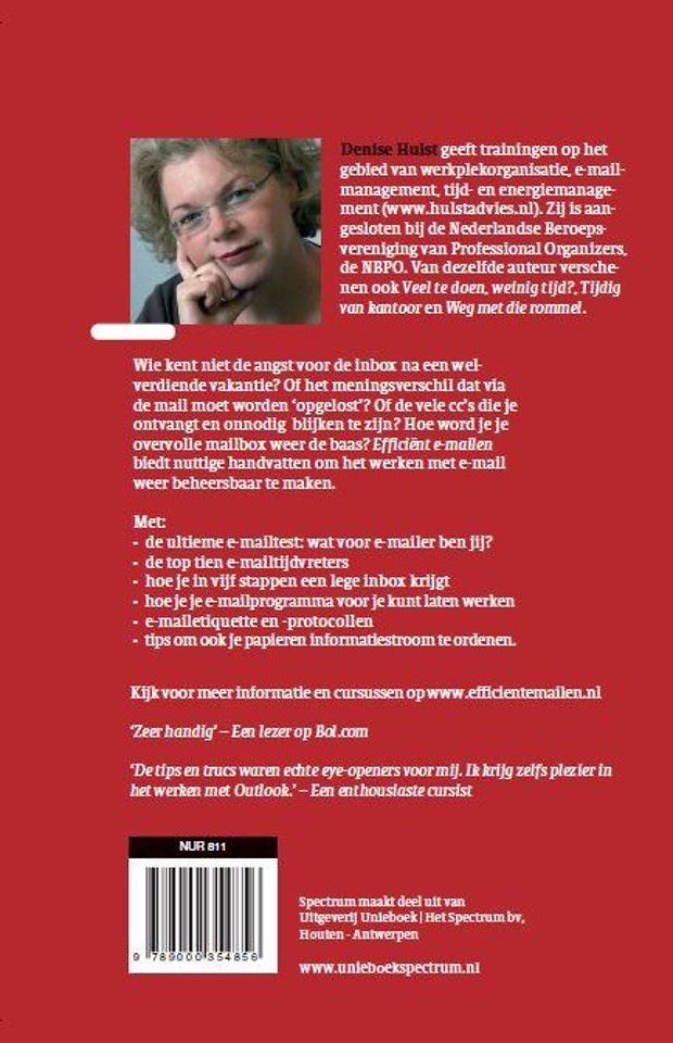 Wie kent niet de angst voor de inbox na een welverdiende vakantie? Of het meningsverschil dat via de mail moet worden ‘opgelost’? Of de vele cc’s die je ontvangt en onnodig blijken te zijn? Hoe word je je overvolle mailbox weer de baas? Efficiënt mailen biedt nuttige handvatten om het werken met de e-mail weer beheersbaar te maken.