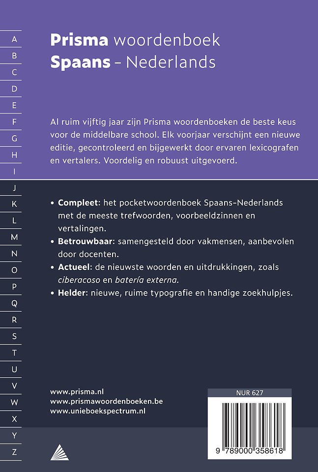 woordenboek taal spaans naslagwerk nederland vertaling trefwoorden alfabetische volgorde onderwijsmiddel voorbeeldzinnen grammatica woordsoorten prisma betekenis spaanse taal uitdrukkingen werkwoorden middelbare school klemtoon uitspraak taalbeheersing taalonderwijs contextueel gebruik latijns-amerika taalkunde idiomatische uitdrukkingen gebruiksaanwijzing communicatie