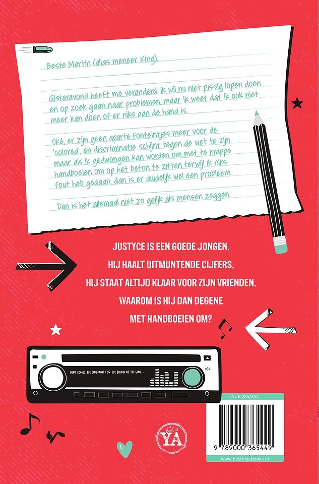 'Wat Justyce en Manny overkomt is nog steeds de dagelijkse realiteit voor veel te veel mensen. Ouders die hun kinderen moeten bijbrengen hoe ze zich moeten gedragen als ze met de politie in aanraking komen, omdat ze het anders misschien niet overleven. En jongeren die elke dag voor de keuze staan: blijf ik mijn best doen of haak ik af? Dit boek heeft me echt de ogen geopend. Het kan zo niet langer.' Margot Reesink, vertaler van Wat zou Martin doen?