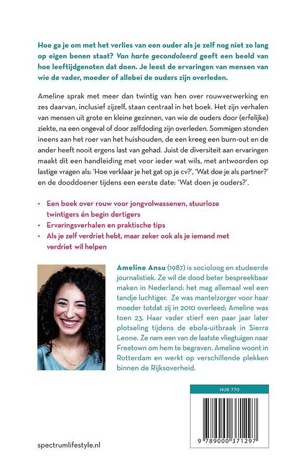 Hoe ga je om met het verlies van een ouder als je zelf nog niet zo lang op eigen benen staat? Van harte gecondoleerd geeft een beeld van hoe leeftijdgenoten dat doen. Je leest de ervaringen van mensen van wie de vader, moeder of allebei de ouders zijn overleden.