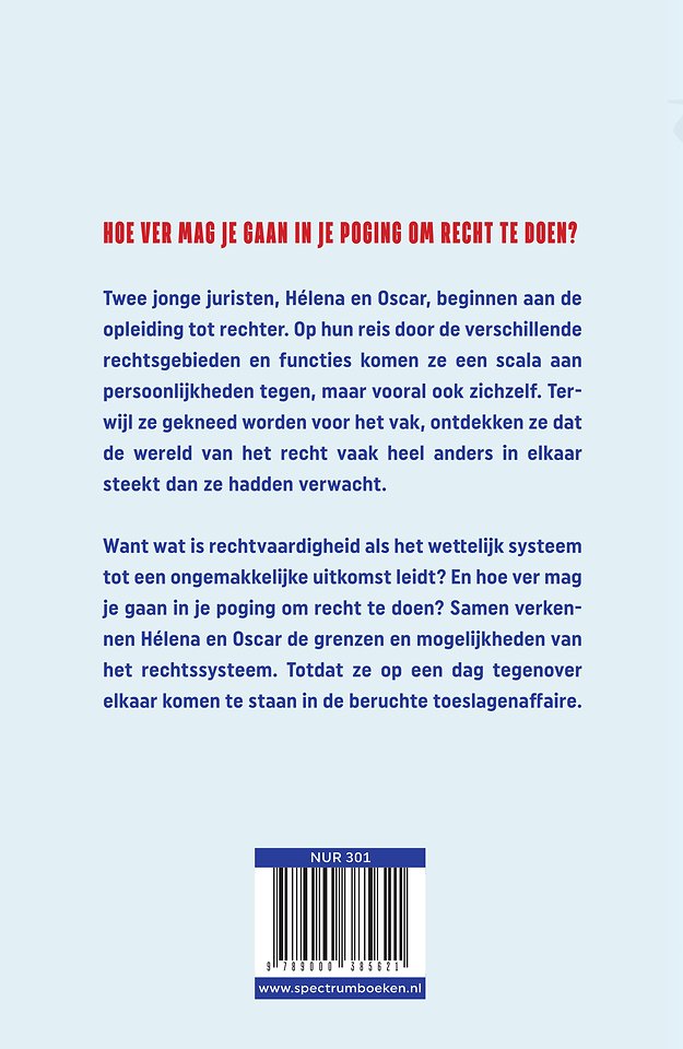 roman strafrecht juridische opleiding rechterlijke macht juridische ethiek rechtspraak rechtvaardigheid rechtssysteem officier van justitie toeslagenaffaire juridische beroepen rechtbank bewijsrecht persoonlijke ontwikkeling juridische procedures legal fiction vriendschap morele dilemma's bestuursrecht toga wetgeving tbs tenlastelegging voorlopige hechtenis zittingszaal raadkamer juridische carrière juridisch jargon griffier