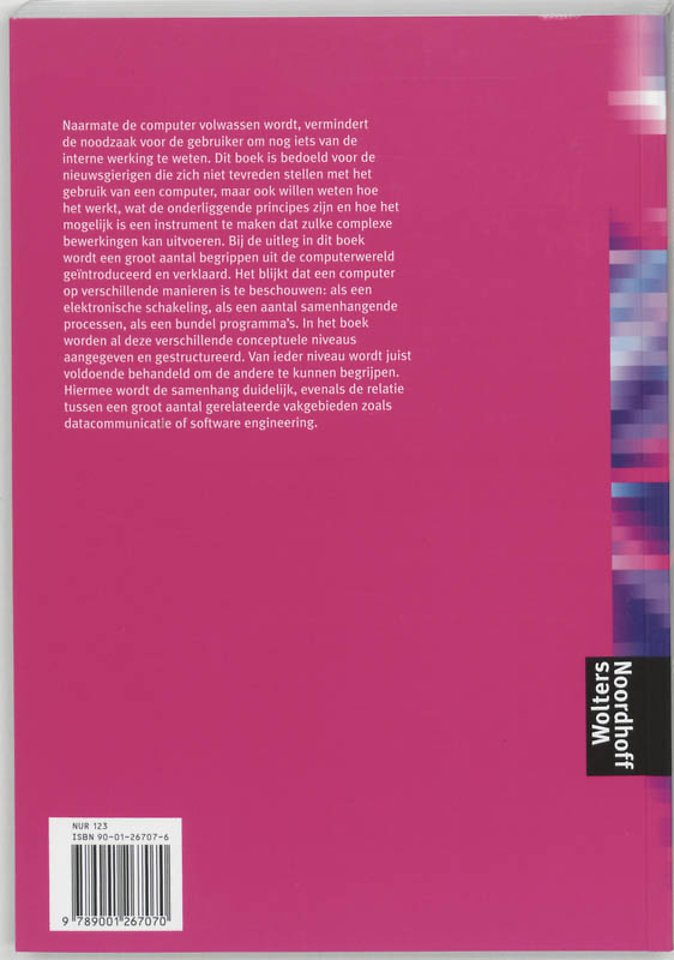 Naarmate de computer volwassen wordt, vermindert de noodzaak voor de gebruiker om nog iets van de interne werking te weten. Dit boek is bedoeld voor de nieuwsgierigen die zich niet tevreden stellen met het gebruik van een computer, maar ook willen weten hoe het werkt, wat de onderliggende principes zijn en hoe het mogelijk is een instrument te maken dat zulke complexe bewerkingen kan uitvoeren.