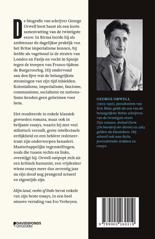 De biografie van schrijver George Orwell leest haast als een korte samenvatting van de twintigste eeuw. In Birma leerde hij als ambtenaar de dagelijkse praktijk van het Britse imperialisme kennen, hij leefde als vagebond in de straten van Londen en Parijs en vocht in Spanje tegen de troepen van Franco tijdens de Burgeroorlog. Hij ondervond aan den lijve wat de belangrijkste stromingen van zijn tijd inhielden. Kolonialisme, imperialisme, fascisme, communisme, socialisme en nationalisme kenden geen geheimen voor hem.