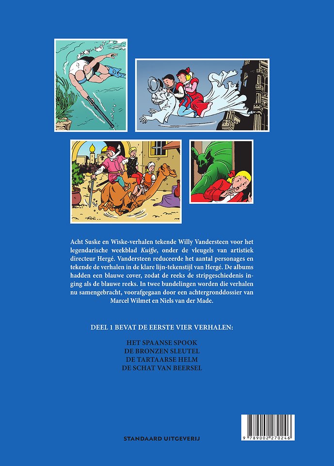 Acht Suske en Wiske-verhalen tekende Willy Vandersteen voor het legendarische weekblad Kuifje, onder de vleugels van artistiek directeur Hergé. Vandersteen reduceerde het aantal personages en tekende de verhalen in de klare lijn-tekenstijl van Hergé. De albums hadden een blauwe cover, zodat de reeks de stripgeschiedenis inging als de blauwe reeks. In twee bundelingen worden die verhalen nu samengebracht, voorafgegaan door een achtergronddossier van Marcel Wilmet en Niels van der Made.