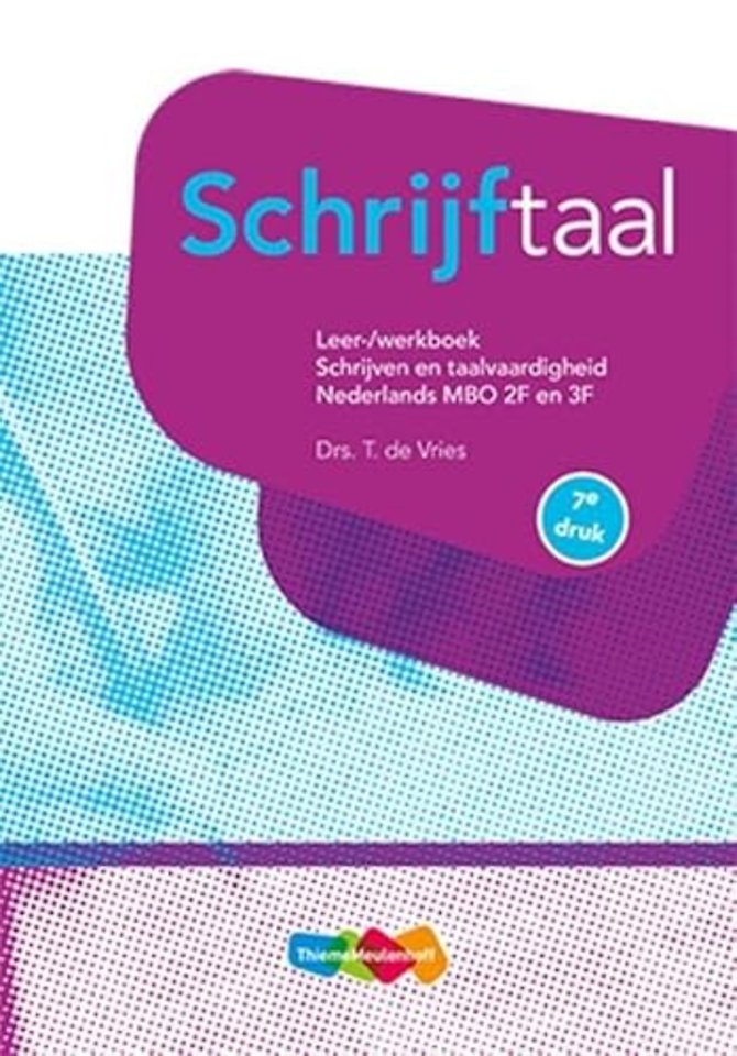 Schrijftaal is al jaren dé succesvolle uitgave voor schriftelijke communicatieve vaardigheden in het middelbaar beroepsonderwijs en het cursorisch onderwijs. Schrijftaal behandelt de domeinen schriftelijk communiceren, taalverzorging (spelling, stijl, grammatica) en tekstcorrectie. Schrijftaal bevat zestig typen van schriftelijke communicatievormen en in totaal 256 oefenopgaven!