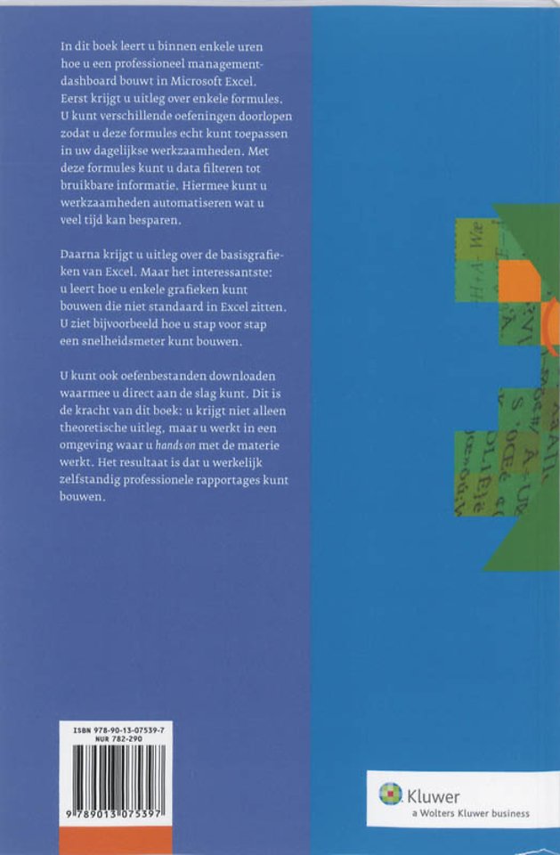 In dit boek leert u binnen enkele uren hoe u een professioneel managementdashboard bouwt in Microsoft Excel. Eerst krijgt u uitleg over enkel formules. U kunt verschillende oefeningen doorlopen zodat u deze formules echt kunt toepassen in uw dagelijkse werkzaamheden. Met deze formules kunt u data filteren tot bruikbare informatie. Hiermee kunt u werkzaamheden automatiseren wat u veel tijd kan besparen.