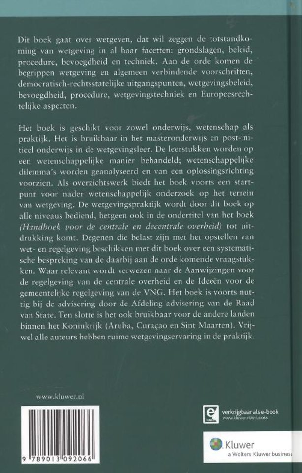 De wetgevingspraktijk wordt door dit boek op alle niveaus bediend, hetgeen ook in de ondertitel van het boek (Handboek voor de centrale en decentrale overheid) tot uitdrukking komt. Degenen die belast zijn met het opstellen van wet- en regelgeving beschikken met dit boek over een systematische bespreking van de daarbij aan de orde komende vraagstukken. Waar relevant wordt verwezen naar de Aanwijzingen voor de regelgeving van de centrale overheid en de Ideeën voor de gemeentelijke regelgeving van de VNG.