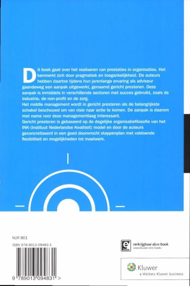 Het middle management wordt in 'Gericht presteren met het INK-managementmodel' als de belangrijkste schakel beschouwd om van visie naar actie te komen. Het boek biedt een helder stappenplan met voldoende flexibiliteit en mogelijkheden tot maatwerk. U hebt hiermee de beschikking over de hulpmiddelen en technieken voor resultaatgericht werken.