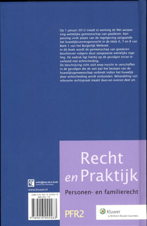 In dit boek wordt de gemeenschap van goederen beschreven volgens deze aangepaste wettelijke regeling. De nadruk ligt hierbij op de gevolgen ervan in verband met echtscheiding.