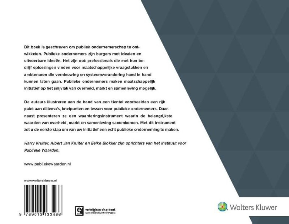 De auteurs illustreren aan de hand van een tiental voorbeelden een rijk palet aan dilemma’s, knelpunten en lessen voor publieke ondernemers. Daarnaast presenteren ze een waarderingsinstrument waarin de belangrijkste waarden van overheid, markt en samenleving samenkomen. Met dit instrument zet u de eerste stap om van uw initiatief een echt publieke onderneming te maken.