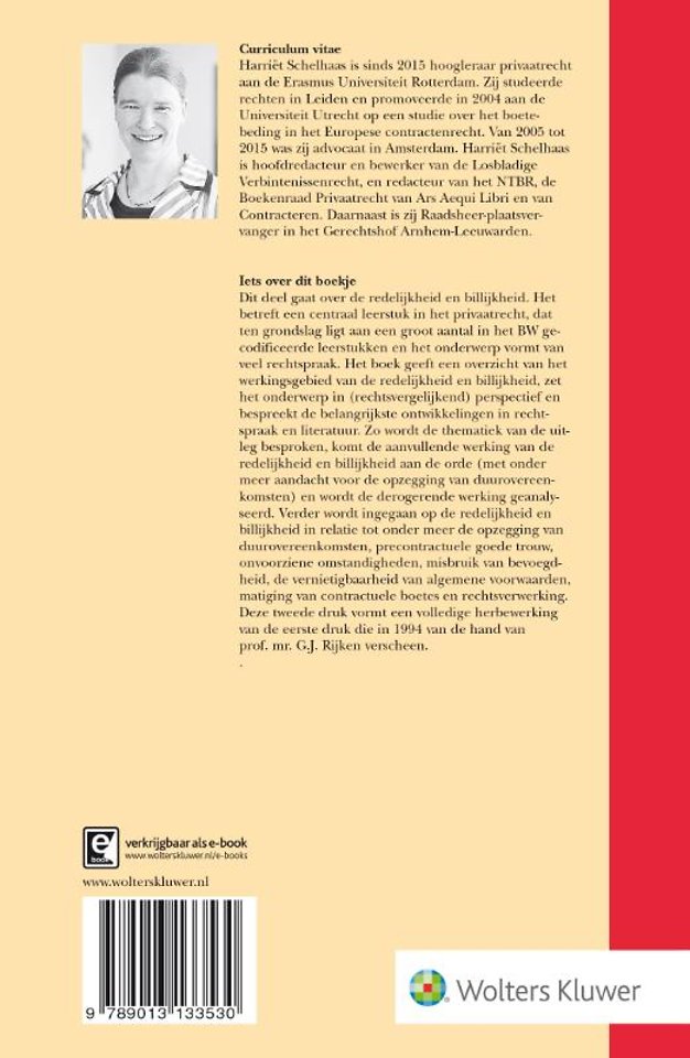 Het beginsel van de redelijkheid en billijkheid ligt ten grondslag aan veel leerstukken in het BW en vormt het onderwerp van veel rechtspraak. Deze uitgave geeft een overzicht van het werkingsgebied van de redelijkheid en billijkheid, zet het onderwerp in rechtsvergelijkend perspectief en bespreekt de belangrijkste ontwikkelingen in de rechtspraak en literatuur.