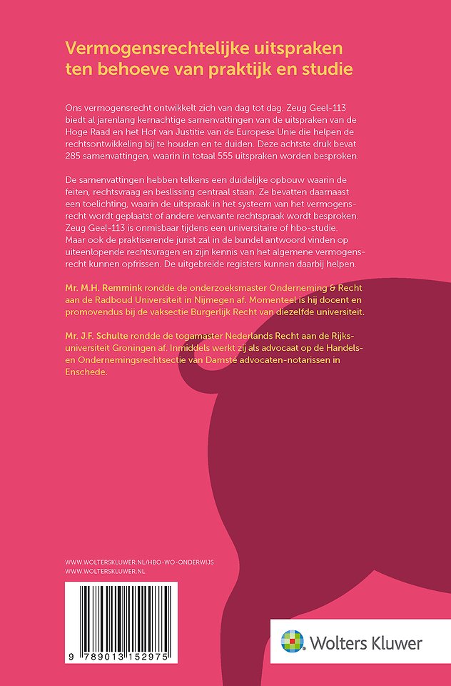 Het vermogensrecht is volop in ontwikkeling. Voor professionals die met dit rechtsgebied in aanraking komen kan het een uitdaging zijn om de actuele stand van zaken in het vizier te houden. Zeug Geel-113 voorziet hen al jarenlang in kernachtige samenvattingen van de uitspraken van de Hoge Raad en het Hof van Justitie EU. De samenvattingenhelpen de rechtsontwikkeling bij te houden en te duiden.