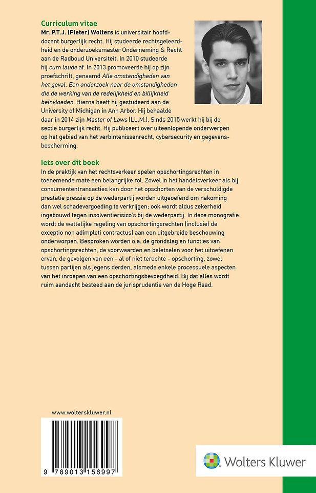 Er bestaat geen vergelijkbare uitgave die het leerstuk opschorting dusdanig uitgebreid en systematisch in kaart brengt als deze titel. De monografie levert inzichten, jurisprudentie en andere actuele ontwikkelingen die van grote waarde zijn voor zowel voor academici als praktijkjuristen.