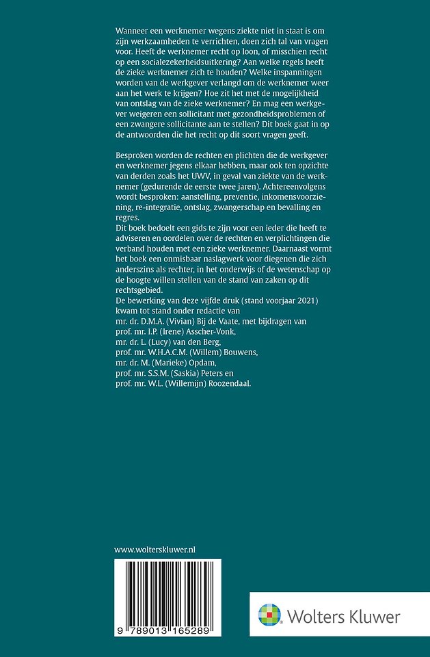 Wanneer een werknemer door ziekte niet in staat is om zijn werkzaamheden te verrichten, doen zich tal van vragen voor. Heeft de werknemer bijvoorbeeld recht op loon of misschien recht op een socialezekerheidsuitkering? Aan welke regels moet de zieke werknemer zich houden? Welke inspanningen worden van de werkgever verwacht om de werknemer weer aan het werk te krijgen? Hoe zit het met de mogelijkheid van ontslag van de zieke werknemer en mag een werkgever weigeren een sollicitant met gezondheidsproblemen of een zwangere sollicitante aan te stellen?