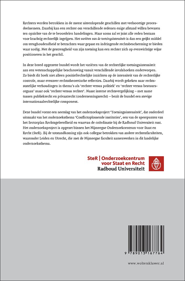 Deze publicatie vormt een neerslag van het onderzoeksproject ‘Toetsingsintensiteit’, dat onderdeel uitmaakt van het onderzoeksthema ‘Conflictoplossende instituties’, een van de speerpunten van het Sectorplan Rechtsgeleerdheid en waarvan de coördinatie bij de Radboud Universiteit rust.