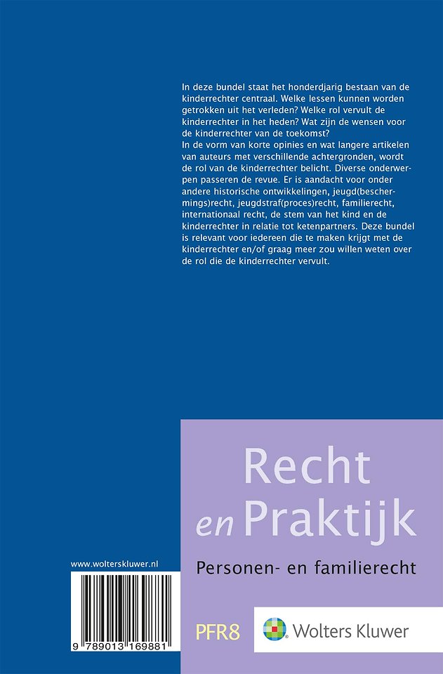In deze bundel staat het honderdjarig bestaan van de kinderrechter centraal. Welke lessen kunnen worden getrokken uit het verleden? Welke rol vervult de kinderrechter in het heden? Wat zijn de wensen voor de kinderrechter van de toekomst? In 100 Jaar Kinderrechter wordt de rol van de kinderrechter belicht vanuit historisch, huidig en toekomstig perspectief. De bundel bestaat uit zowel korte opinies als langere artikelen van auteurs met verschillende achtergronden. Denk aan wetenschappers, psychologen, orthopedagogen, medewerkers van de Raad voor de Kinderbescherming, advocaten en rechters.