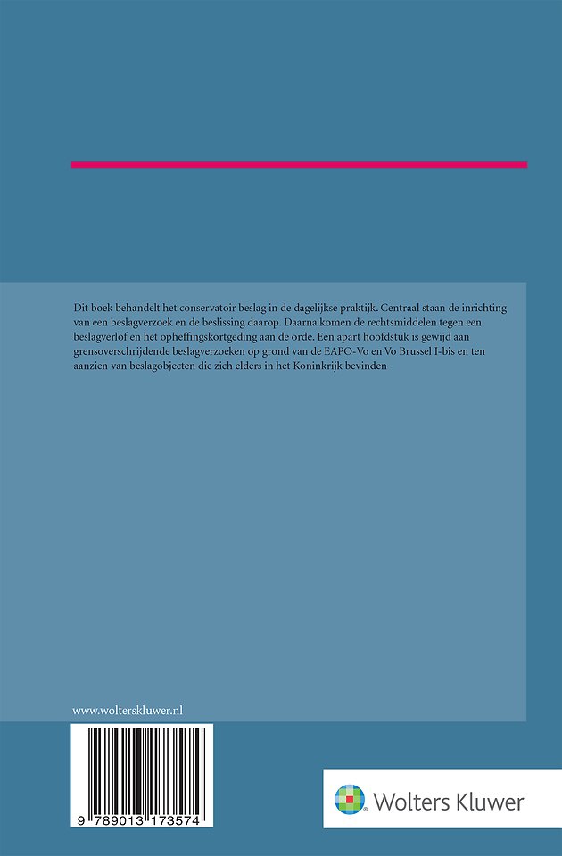 Conservatoir beslag in de Nederlandse praktijk geeft een stap-voor-stap overzicht van het conservatoire beslagverzoek in de Nederlandse rechtspraktijk. De titel volgt een chronologische opbouw, die begint met de inrichting van een beslagverzoek en de beslissing daarop. Daarna komen de rechtsmiddelen tegen een beslagverlof en het opheffingskortgeding aan de orde. Daarnaast wordt stilgestaan bij verscheidene gelieerde vraagstukken, waaronder grensoverschrijdende beslagverzoeken op grond van de EAO-Vo en Vo Brussel I-bis en ten aanzien van beslagobjecten die zich elders in het Koninkrijk bevinden.