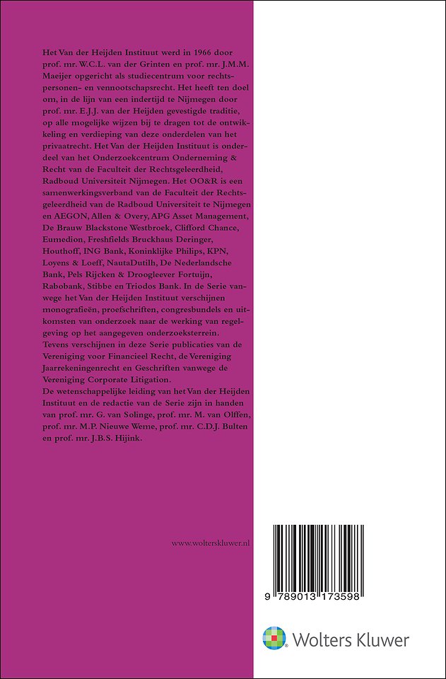 Dit handboek voorziet in een wetenschappelijke en praktijkgerichte beschrijving, analyse en verdieping van de wet- en regelgeving, governancecodes, jurisprudentie en literatuur. De titel belicht de eigen benadering en relevante aspecten van het ondernemingsrecht binnen dit domein, zoals: