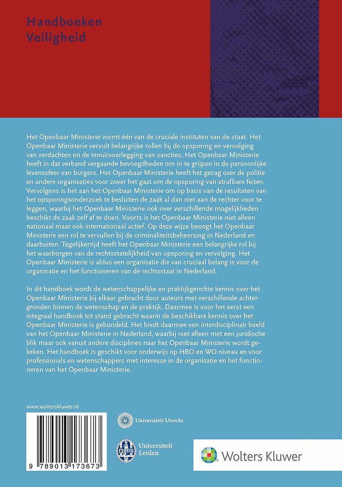Deze titel geeft een actueel overzicht van de organisatie en het functioneren van het Openbaar Ministerie in Nederland. Dit is het eerste handboek waarin de beschikbare kennis over het OM is gebundeld. Er wordt hierbij niet enkel met een juridische blik naar het Openbaar Ministerie gekeken, maar ook vanuit andere relevante disciplines.