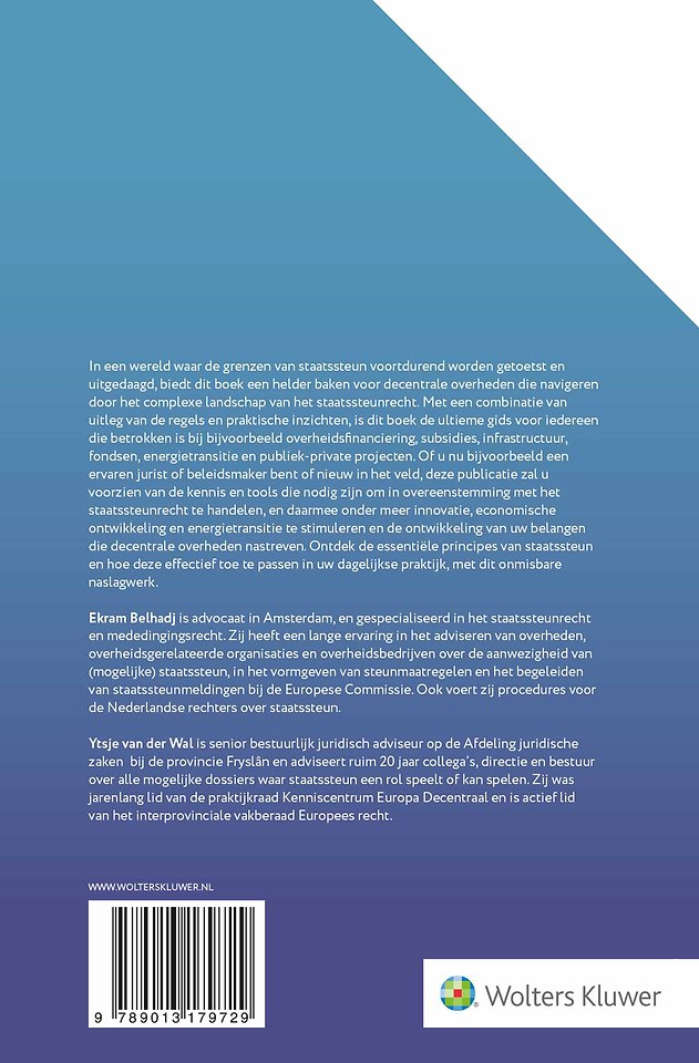 Dit boek beoogt een wegwijzer door de complexe materie van het staatssteunrecht te zijn. Het boek behandelt vanuit een praktische invalshoek de regels op het gebied van staatssteun: wanneer is er sprake van staatssteun, wanneer moet een steunmaatregel gemeld worden bij de Europese Commissie, waaraan moeten maatregelen voldoen om vrijgesteld te zijn van de meldingsplicht en hoe beoordeelt de Europese Commissie gemelde maatregelen. Ook wordt ingegaan op de procedurele kanten van het staatssteunrecht, zoals op de manier waarop een melding van een steunmaatregel moet worden ingericht en op procedures bij de rechter over (schending van de) staatssteunregels. Ten slotte worden aanzetten gegeven voor een programma dat de naleving van de staatssteunregels door overheden moet verbeteren (een compliance-programma ofwel het staatssteunproof maken van de organisatie).