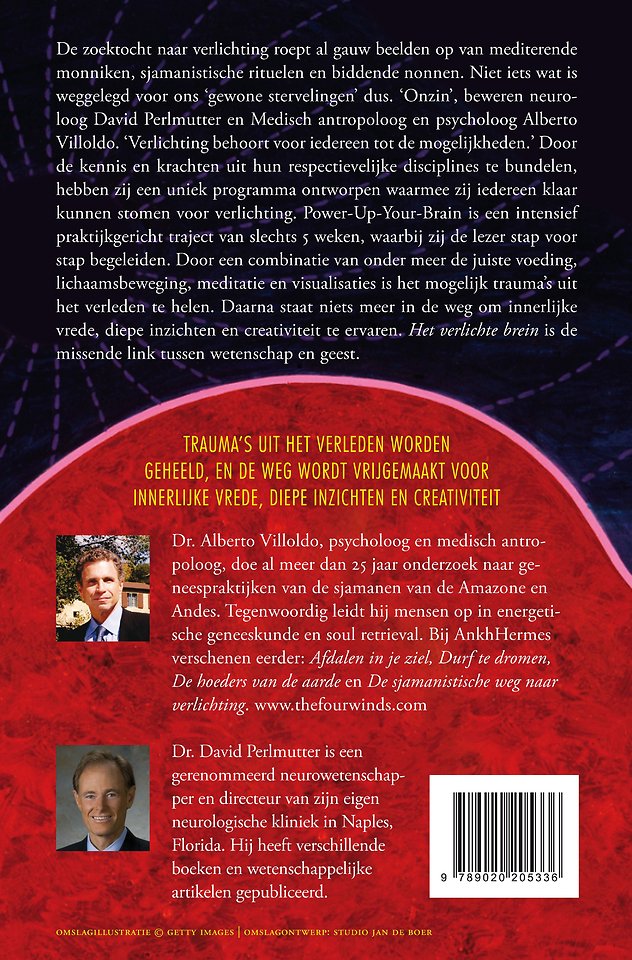 Vind de weg naar verlichting met Het verlichte brein van Alberto Villoldo en David Perlmutter. De zoektocht naar verlichting roept al gauw beelden op van mediterende monniken, sjamanistische rituelen en biddende nonnen. Niet iets wat is weggelegd voor ons ‘gewone stervelingen’ dus. ‘Onzin’, beweren neuroloog David Perlmutter en medisch antropoloog en psycholoog Alberto Villoldo. ‘Verlichting behoort voor iedereen tot de mogelijkheden.’ Door de kennis en krachten uit hun respectievelijke disciplines te bundelen, hebben zij een uniek programma ontworpen waarmee zij iedereen klaar kunnen stomen voor verlichting.
