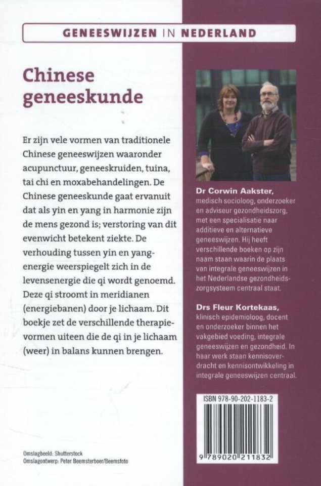 In de Chinese geneeskunde is ziekte het gevolg van een verstoring in de levensenergie qi. De geneeswijzen zijn erop gericht de balans tussen yin en yang te herstellen. Chinese geneeskunde van Corwin Aakster en Fleur Kortekaas geeft actuele informatie over de vele Chinese therapievormen, waaronder acupunctuur, geneeskruiden, shiatsu, tuina en tai chi. In 2016 verschijnt een actuele, geheel herziene versie van het gerenommeerde standaardwerk boot professionals: Geneeswijzen in Nederland. Vooruitlopend op deze nieuwe editie geeft AnkhHermes een serie van 12 kleine boekjes uit met daarin afgeleide informatie uit het grote handboek.