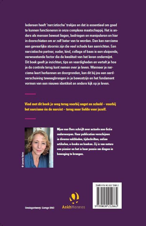 Mjon van Oers is specialist op het gebied van narcisme. Zij is sinds 1992 zelfstandig auteur / journalist en schrijft (ook) over bewegen, gezondheid, mens en relaties.
