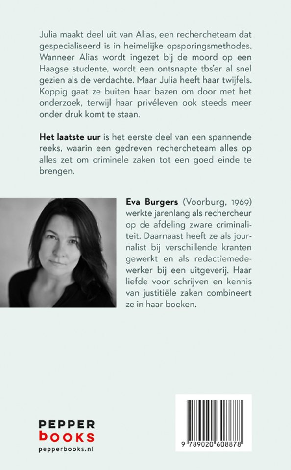 Eva Burgers (Voorburg, 1969) werkte jarenlang als rechercheur op de afdeling zware criminaliteit. Daarnaast heeft ze als journalist bij verschillende kranten gewerkt en als redactiemedewerker bij een uitgeverij. Haar liefde voor schrijven en kennis van justitiële zaken combineert ze in haar boeken.