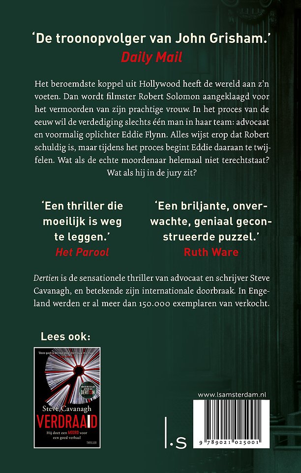 ‘Een briljante, onverwachte, geniaal geconstrueerde puzzel. Steve Cavanagh werkt een jaloersmakend gegeven met verve uit.’ Ruth Ware