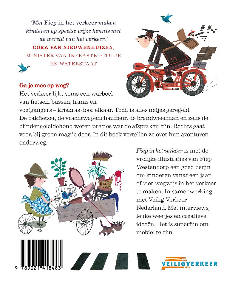 Fiep in het verkeer is een rijk geïllustreerd non-fictieboek dat kinderen vanaf vier jaar wegwijs maakt in het verkeer. Met interviews, leuke weetjes en creatieve ideeën. Zo ontdek je hoe je je eigen vliegtuig kunt knutselen of een raceparcours voor je skelter kunt uitzetten. Het is superfijn om mobiel te zijn!