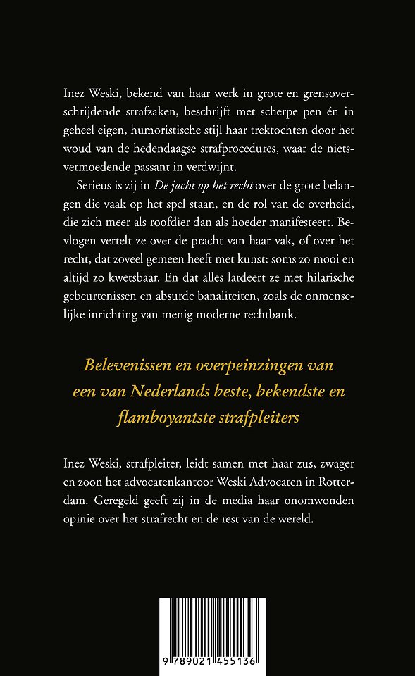 Strafpleiter Inez Weski, bekend van haar werk in grote en grensoverschrijdende strafzaken, beschrijft met scherpe pen én in geheel eigen, humoristische stijl haar trektochten door het woud van de hedendaagse strafprocedures, waar de nietsvermoedende passant in verdwijnt.