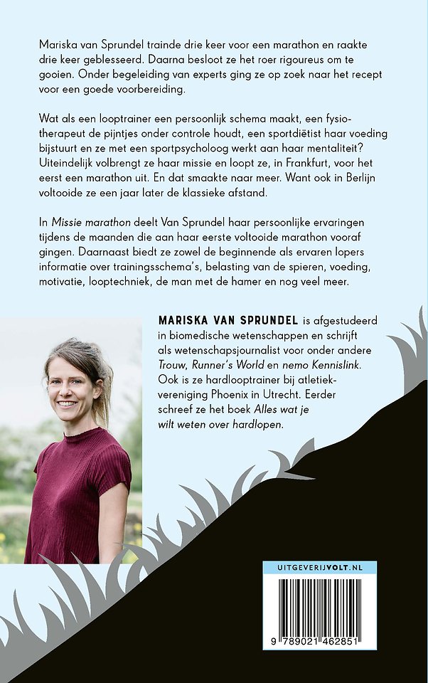 In dit boek deelt ze haar ervaringen tijdens de maanden die aan de marathon voorafgingen, aangevuld met informatie over trainingsschema’s, voeding, motivatie, looptechniek en nog veel meer. Of je nu een beginnende hardloper bent of zelf ook plannen aan het maken bent voor een (halve) marathon, de informatie en tips van Mariska en haar begeleidingsteam helpen je de kans op blessures te verkleinen en zorgen ervoor dat jij met plezier je favoriete trainingsrondjes loopt.