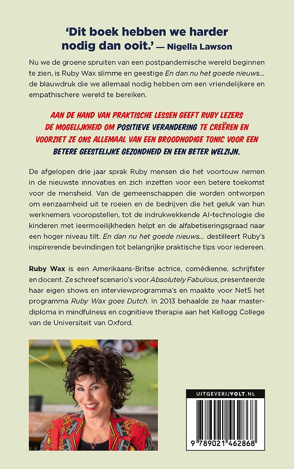 Nu we de groene spruiten van een postpandemische wereld beginnen te zien, is Ruby Wax slimme en geestige En dan nu het goede nieuws... de blauwdruk die we allemaal nodig hebben om een vriendelijkere en empathischere wereld te bereiken.