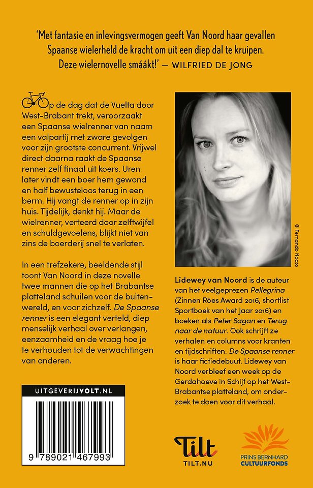 In een trefzekere, beeldende stijl toont Van Noord in deze novelle twee mannen die op het Brabantse platteland schuilen voor de buitenwereld, en voor zichzelf. De Spaanse renner is een elegant verteld, diep menselijk verhaal over verlangen, eenzaamheid en de vraag hoe je te verhouden tot de verwachtingen van anderen.