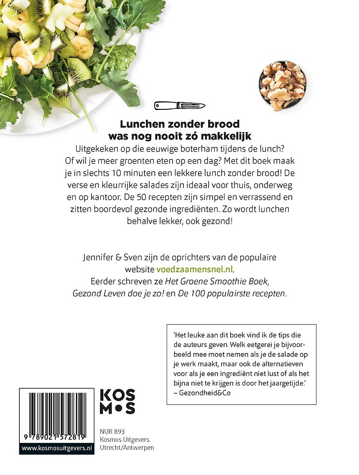 ‘Het leuke aan dit boek vind ik de tips die de auteurs geven. Welk eetgerei je bijvoorbeeld mee moet nemen als je de salade op je werk maakt, maar ook de alternatieven voor als je een ingrediënt niet lust of als het bijna niet te krijgen is door het jaargetijde.’ – Gezondheid&Co